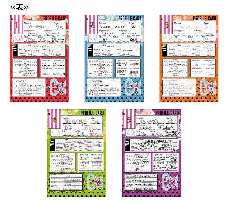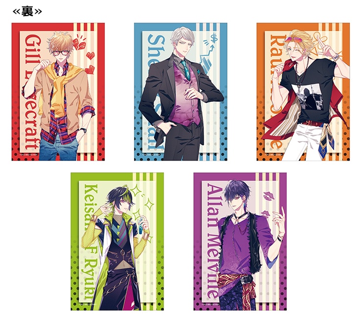 「ギル・ラヴクラフト」「シェルビー・スネイル」「ラウル・アコニット」「螢彩院・F・琉輝」「アラン・メルヴィル」のプロフィールカード5種セットです。