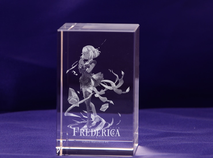 姫のビジュアルをクリスタルキューブ内に3D立体レーザー彫刻で再現した3Dクリスタルです。