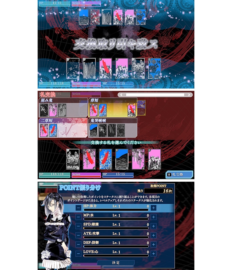 『華アワセ』の特徴でもある花札バトルパートはシステムを全4巻統一。