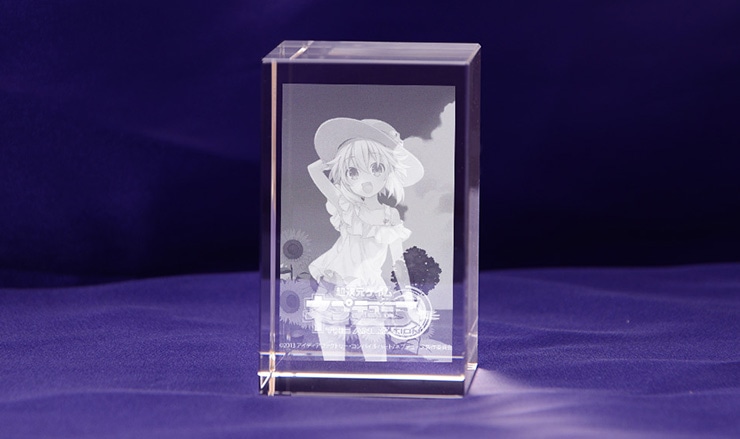 フィギュアの元イラストである夏服のネプテューヌを、クリスタルキューブ内に3D立体レーザー彫刻で再現した3Dクリスタルです。