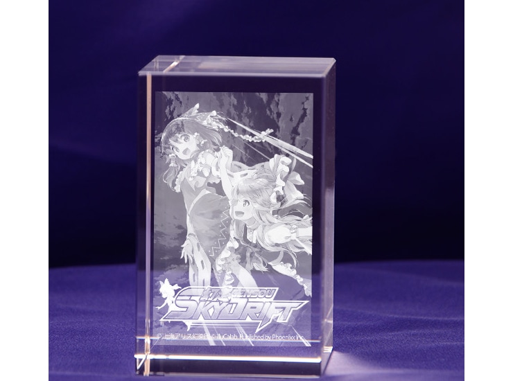 本作のメインキャラクターである「博麗霊夢」と「霧雨魔理沙」のビジュアルをクリスタルキューブ内に3D立体レーザー彫刻で再現した3Dクリスタルです。