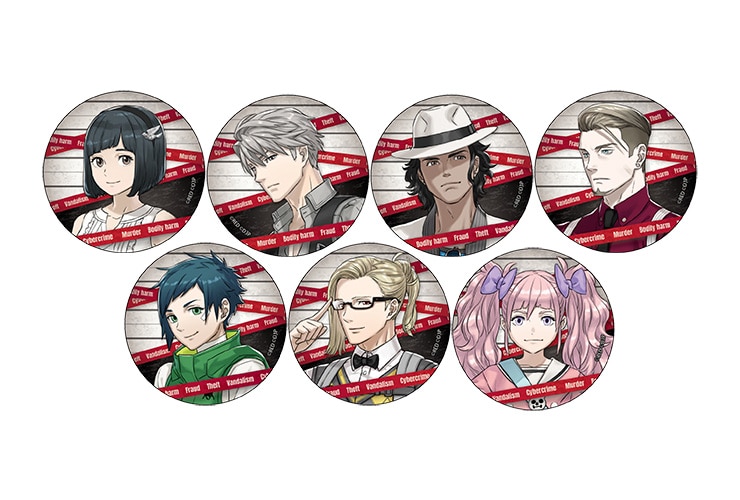「天峰ミカ(主人公)」「アッシュ・マイヤー」「ハミエル・ルイス」「ジブ・ヴァルツァー」「ラミー・カリエール」「カミュ・アインハルト」「サリィ・デル・テスタ」のイラストを使用した缶バッジ7種セットです。