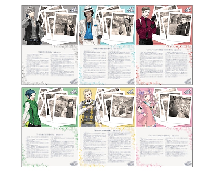 吉村りりか氏書き下ろし。「アッシュ・マイヤー」「ハミエル・ルイス」「ジブ・ヴァルツァー」「ラミー・カリエール」「カミュ・アインハルト」「サリィ・デル・テスタ」の書き下ろしショートストーリーをお楽しみいただける、カード6種セットです。