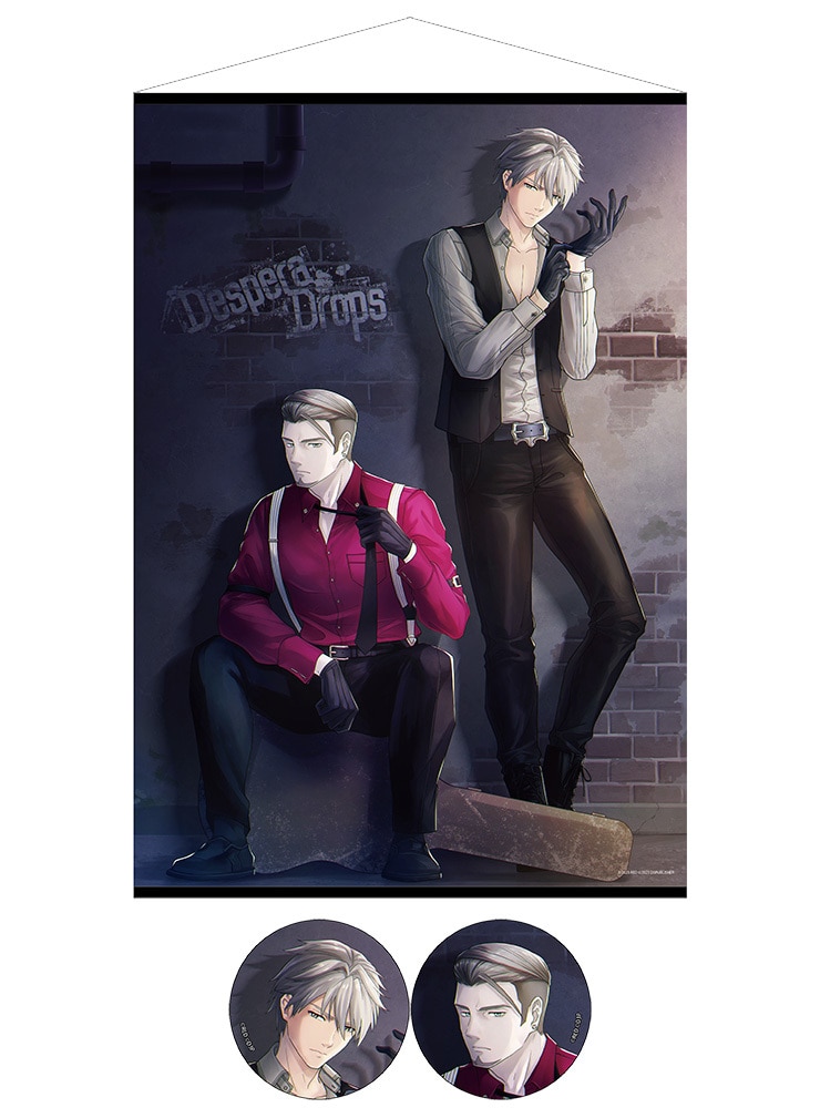 「アッシュ・マイヤー」「ジブ・ヴァルツァー」の描き下ろしイラストを使用したB2タペストリーと缶バッジです。