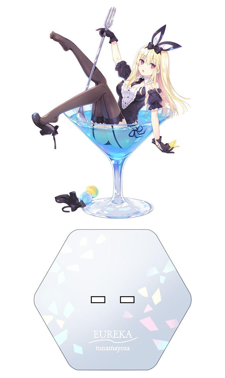 オリジナルフィギュアとして生まれたキャラクター「ユーレカ」がグラスに入ったデザインのアクリルスタンドです。グラス部分のみ透け感があり、キャラクターを引き立てます。