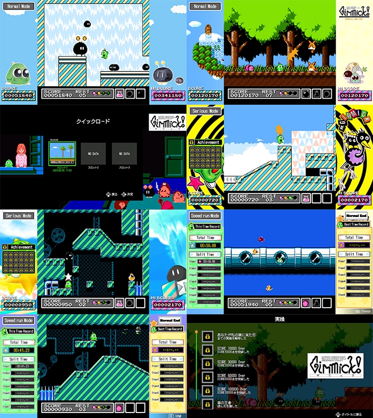 1992年にサンソフトよりファミコン用アクションゲームとして発売された『Gimmick!』が、スペシャルエディションとして復活! 古き良き時代の挑戦を現代のプレイヤー向けに、クイックセーブ&ロードや、巻き戻しができる便利な機能も搭載。また、ノーマルエンドあるいはトゥルーエンドの各ステージのクリアタイムが記録できる『スピードランモード』では、オンラインランキングにてトータルタイムを世界のプレイヤーと競うことができます。さらに、25個の実績を解放していく『シリアスモード』が遊べます。かわいい見た目と裏腹に高度でダイナミックなアクションと、ファミコン屈指の重厚でポップな音楽はもはや伝説!スペシャルエディションの新たな『Gimmick!』に挑戦してください。