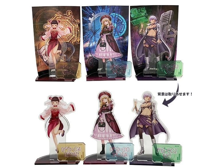 エレメントドール「ショーティア」「レイニャン」「エクスイ」のアクリルフィギュア3種セットです。