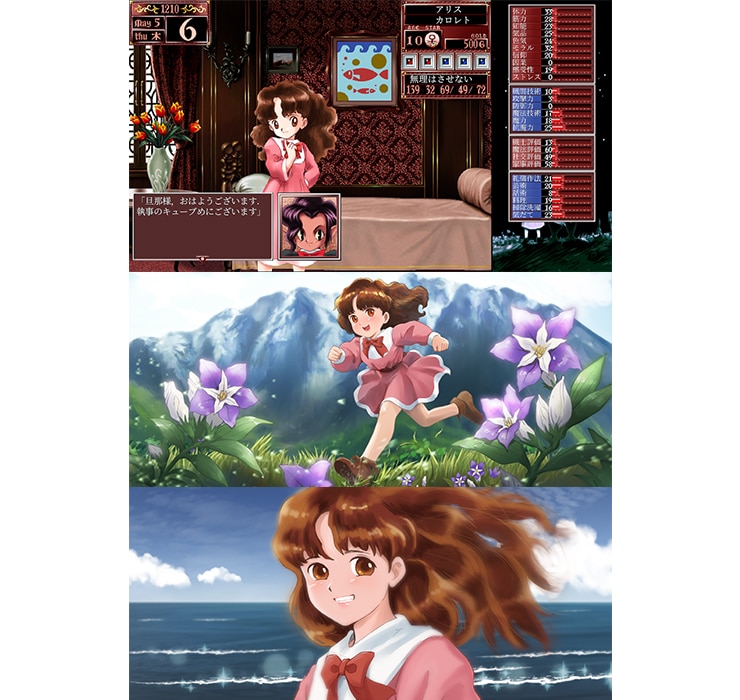 本作は2004年に発売された「プリンセスメーカー2 リファイン」をベースにしていますが、特に重要なグラフィックは赤井孝美氏によって、元のPC-98版に近いテイストで描き直されました。さらに、現代のゲーム環境に合わせて高解像度で描かれており、より細部までこだわり抜かれたクオリティとなっています。