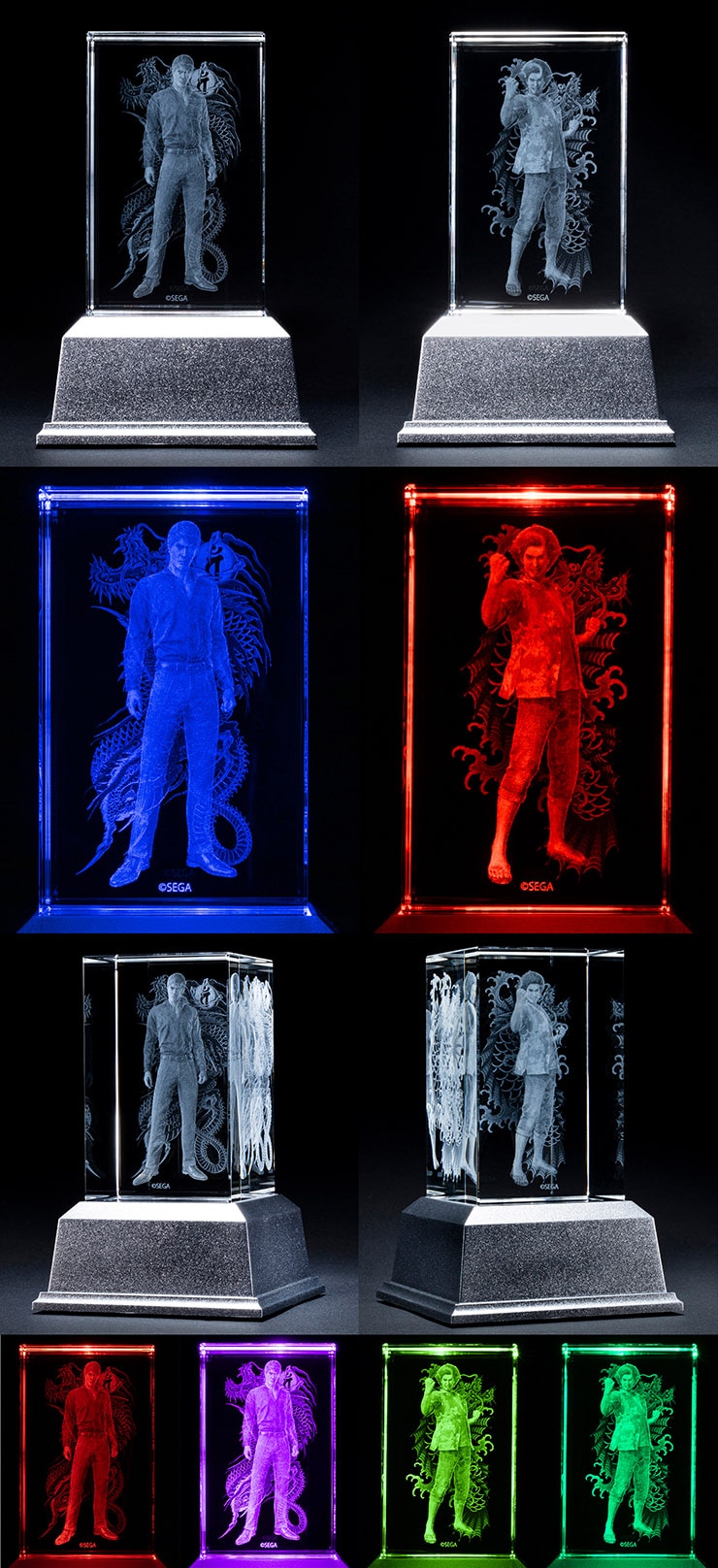 「桐生 一馬」と「春日 一番」のビジュアルを、それぞれクリスタルキューブ内に3D立体レーザー彫刻で再現した3Dクリスタルの2種セットです。