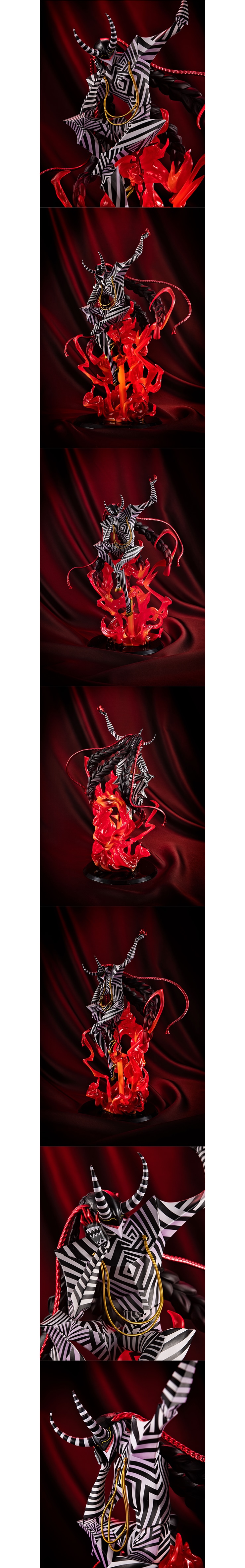 レーヴァテインの上に大胆不敵に座る印象的なポーズを、挙げている手の先まで含めると高さ約300mmとなる迫力のボリュームと緻密な造形で立体化。特徴的な縞模様も全身くまなく再現しています。