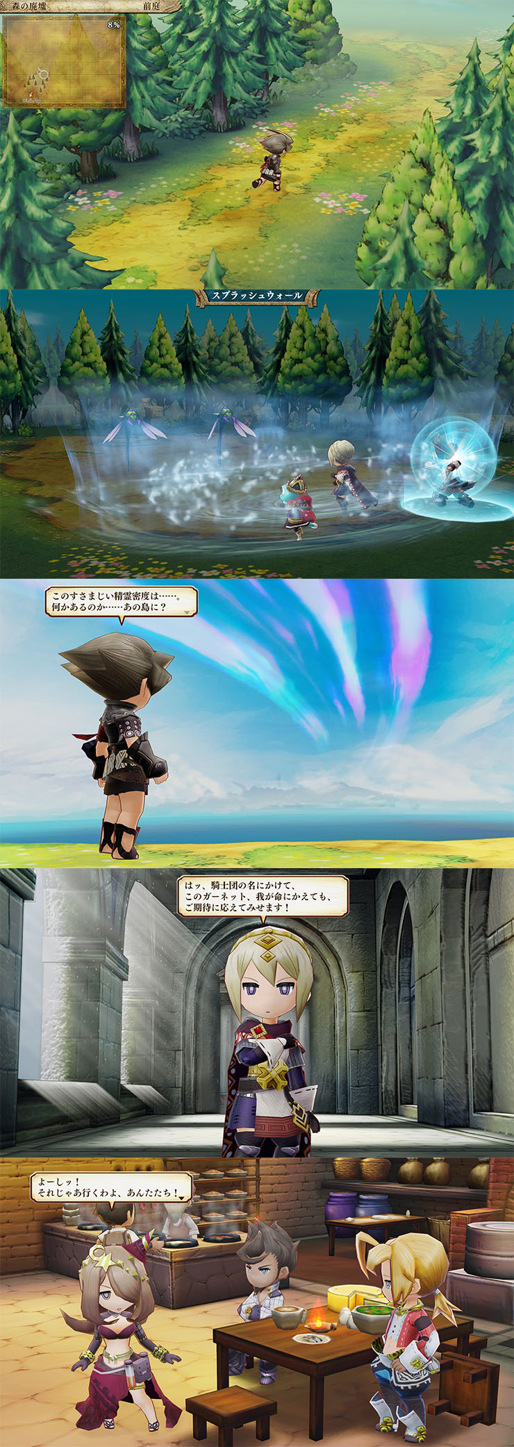 精霊は、水・風・炎・邪の4種類の精霊が勢力を競い、フィールドの属性を支配しています。