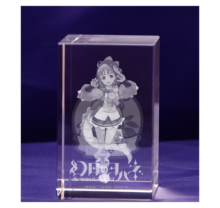描き下ろしのイラストをクリスタルキューブ内に3D立体レーザー彫刻で再現した3Dクリスタルです。