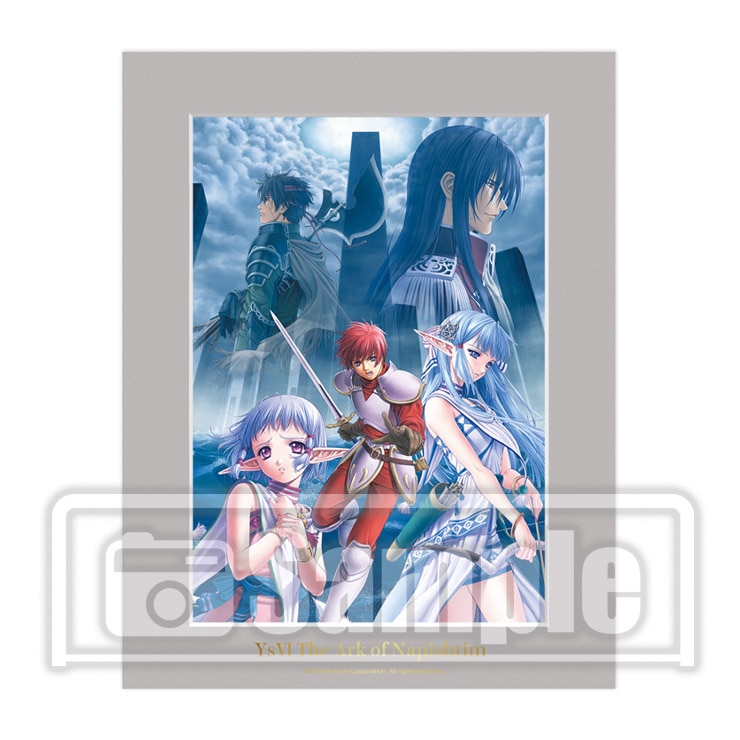 『イースVI -ナピシュテムの匣-』、『イースSEVEN』、『イースVIII -Lacrimosa of Dana-』、『イースIX -Monstrum Nox-』の美麗なイラストを“キャラファインマット”としてお届けします! 高品位美術印刷技術“キャラファイン”と専用に開発された高級用紙を採用した、手頃なサイズ感で楽しめる美麗なアートをぜひご堪能ください。