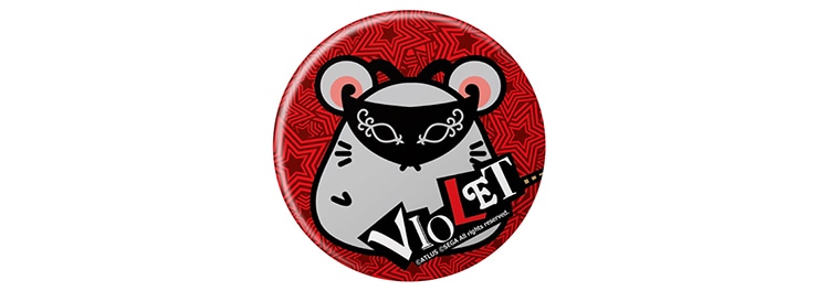 オタカラを盗む道中の予期せぬ出来事によりネズミの姿になってしまった怪盗団をモチーフにしたグッズ“Picaresque Mouse”シリーズより、ヴァイオレットがデザインされた直径57mmの丸型缶バッジです。