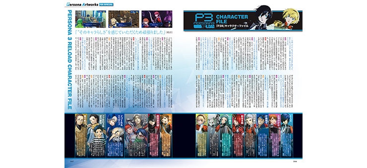 S.E.E.S.メンバーを中心とした『P3』関連タイトルの主要キャラクターたちにフォーカス。『P3R』を中心に『P3F』『P3P』『P4U』『P4U2』『PQ』『PQ2』『P3D』と、タイトルごとに彼らの魅力やその変化をビジュアルとともに追いかける、ネタバレ必至のキャラクター大特集。