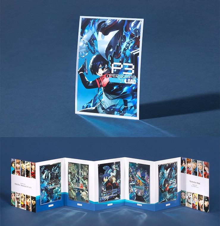『ペルソナ3』の名を冠したタイトルのパッケージアートをあしらったメタリックカードを蛇腹折りカードスタンドと共に。シリーズの歴史に思いを馳せるメモリアルアイテム。