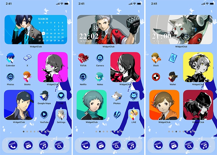 スマホのホーム画面を『ペルソナ3 リロード』のアート満載にカスタムできるオリジナルきせかえテンプレート。アイコンや壁紙などをS.E.E.S.メンバーが彩る。