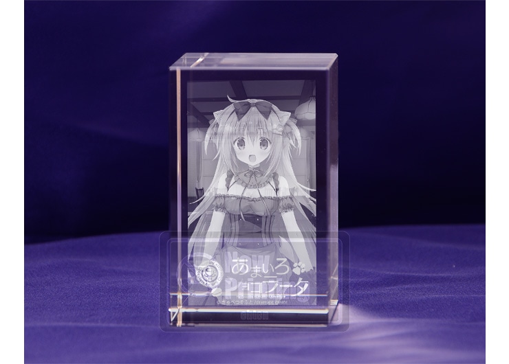 「天宮みくり」のビジュアルをクリスタルキューブ内に3D立体レーザー彫刻で再現した3Dクリスタルです。