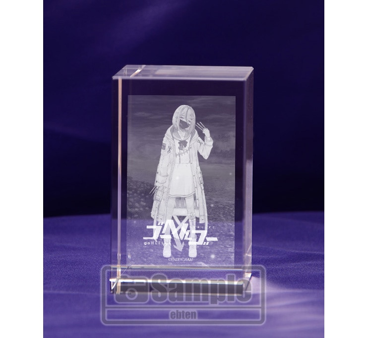 本作のキャラクター「きりく」をクリスタルキューブ内に3D立体レーザー彫刻で再現した3Dクリスタルです。