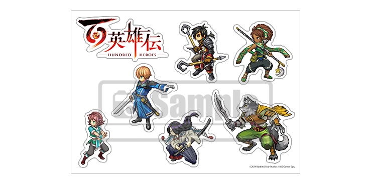 本作登場キャラから「NOA」「SEI」「MERIS」「GAOU」「MIO」「RYAN」をシールにしてグッズ化