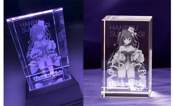 「皇はねる」のビジュアルをクリスタルキューブ内に3D立体レーザー彫刻で再現した3Dクリスタルです。