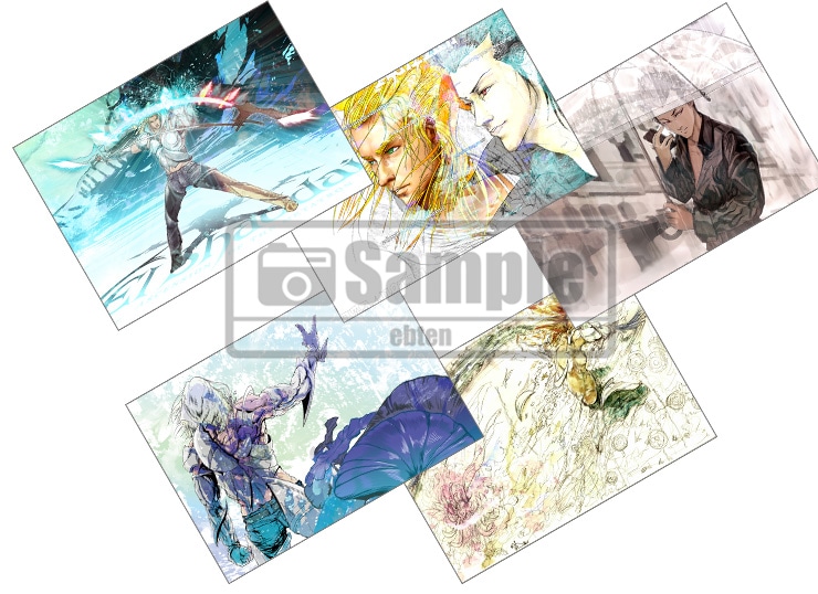 「イーノック」や「ルシフェル」が描かれたブロマイド5種セットです。