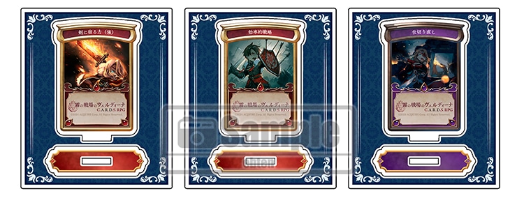 作中に登場するカードを使用したミニアクリルスタンドの3種セットです。