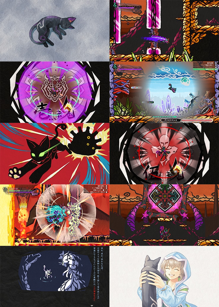 「九魂の久遠(くこんのくおん)」は、現世で死に、冥界で目覚めたネコ“クオン”が、飼い主の待つ現世へと再び帰還するため、過酷な冥界を踏破する2D横スクロールアクションです。