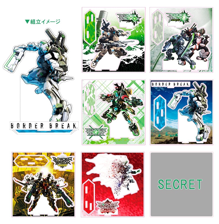 ボーダーブレイク開発チーム考案!各バージョンの代表的な機体とロゴをセットにしたアクリルスタンドです。