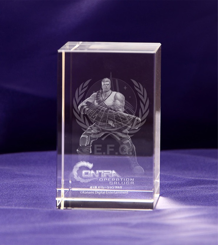 「ビル」のビジュアルをクリスタルキューブ内に3D立体レーザー彫刻で再現した3Dクリスタルです。