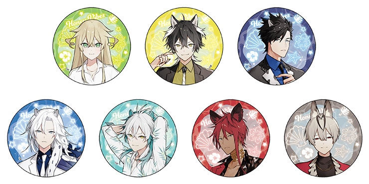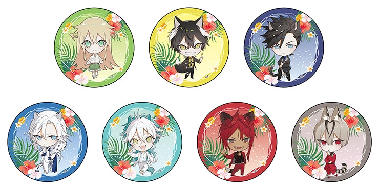 主人公、エリヤ、フィン、アルヴィン、イーノ、ミロ、テオの等身イラストを使った缶バッジです。