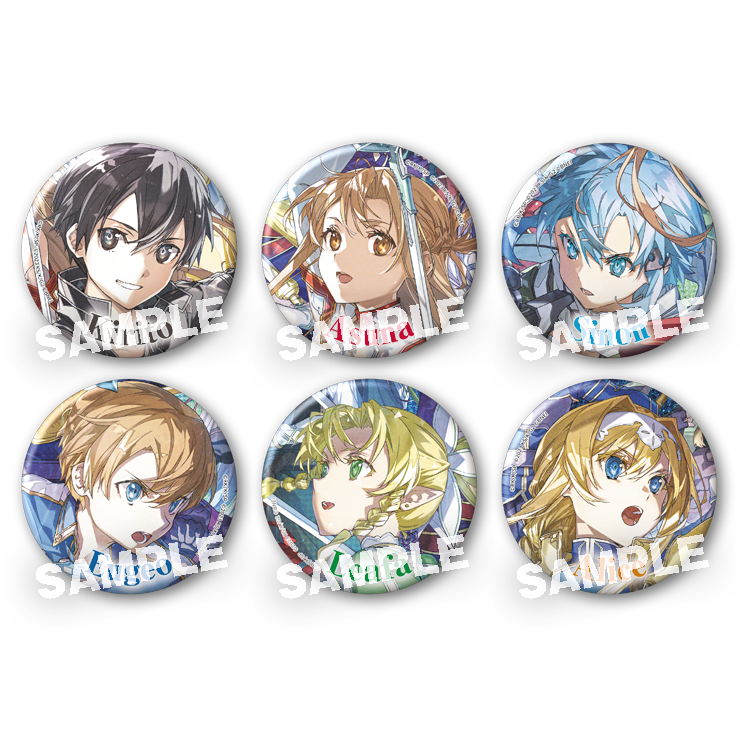 abec氏描き下ろしのキービジュアルから、キリト、アスナ、シノン、リーファ、ユージオ、アリスの6キャラをあしらった缶バッジ6種セット
