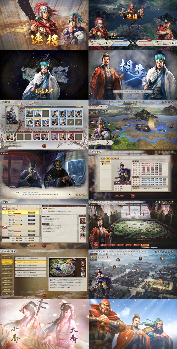武将同士の因縁により劇的に展開が変わる「宿命」や、多彩な物語や展開を選んで楽しむ「演義伝」、スピーディかつより奥深く生まれ変わった戦闘など、武将の人間性を描く追加要素も満載。