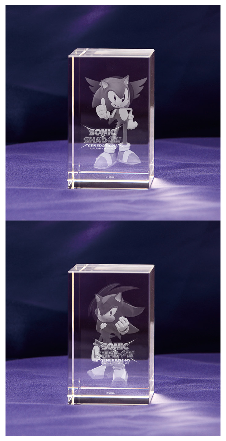 「ソニック」「シャドウ」をクリスタルキューブ内に3D立体レーザー彫刻で再現した3Dクリスタルです。