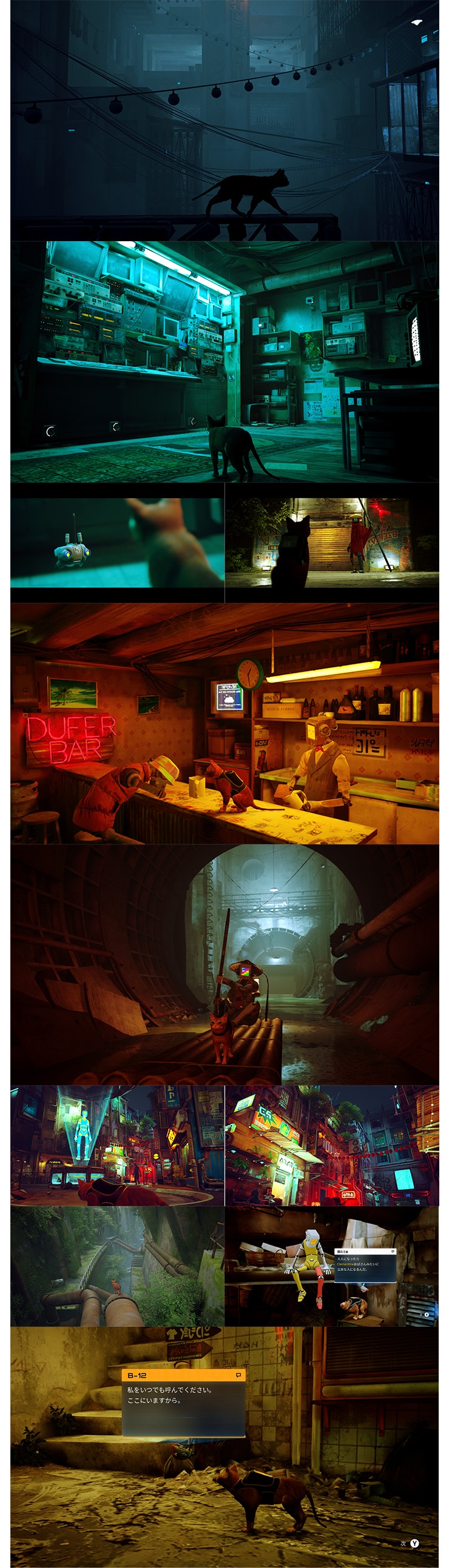 細部まで緻密に描写された異世界の衰退したサイバーシティを舞台に、プレイヤーは猫となってネオン街やダークな雰囲気の裏路地を自在に歩き回り、真相を追っていく。
