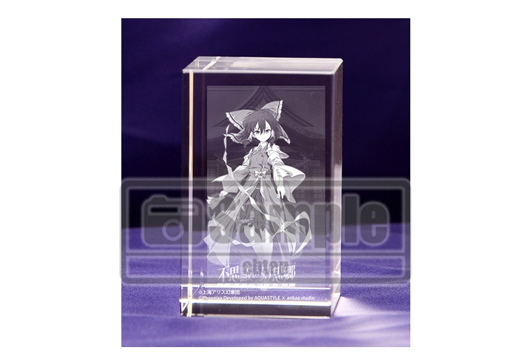 本作のキャラクター「博麗霊夢」をクリスタルキューブ内に3D立体レーザー彫刻で再現した3Dクリスタルです。