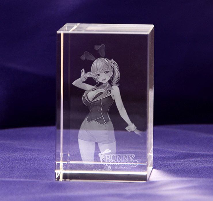 キャラクターイラストをクリスタルキューブ内に3D立体レーザー彫刻で再現した3Dクリスタルです。