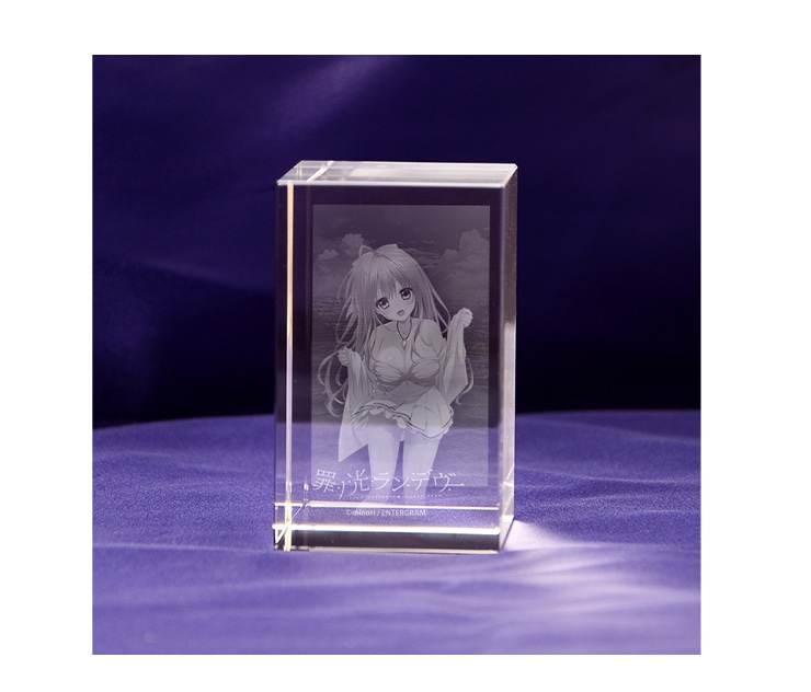 ●3Dクリスタル「真澄 あい」 ビジュアルをクリスタルキューブ内に3D立体レーザー彫刻で再現した3Dクリスタルです。 付属のLEDスタンドに設置することにより、光の加減や角度によってさまざまな見え方をしますので、煌びやかで飽きのこないインテリアアイテムとして楽しめます。