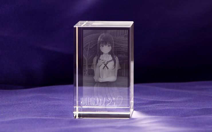 「桃尻芹香」のイラストをクリスタルキューブ内に3D立体レーザー彫刻で再現した3Dクリスタルです。