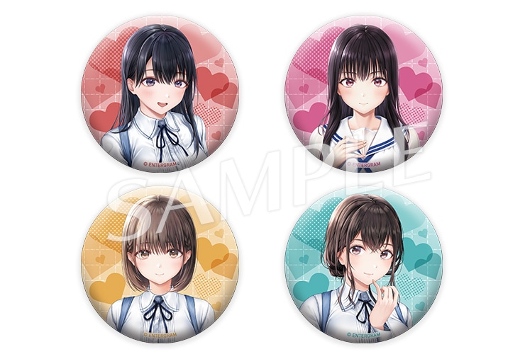 「許斐ゆい」「玉依ひまり」「八尋実桜」「桃尻芹香」の缶バッジセットです。