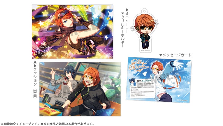 【クッション、アクリルキーホルダー、メッセージカード】の3種がセットになったスペシャルなアイテムです。
