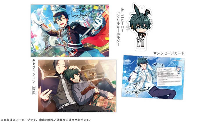 【クッション、アクリルキーホルダー、メッセージカード】の3種がセットになったスペシャルなアイテムです。