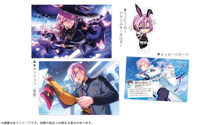 【クッション、アクリルキーホルダー、メッセージカード】の3種がセットになったスペシャルなアイテムです。