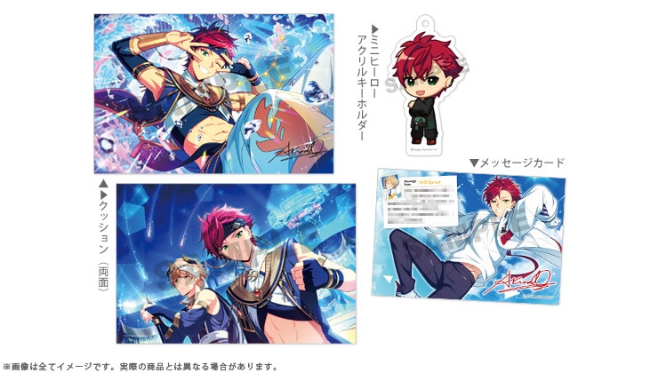 【クッション、アクリルキーホルダー、メッセージカード】の3種がセットになったスペシャルなアイテムです。