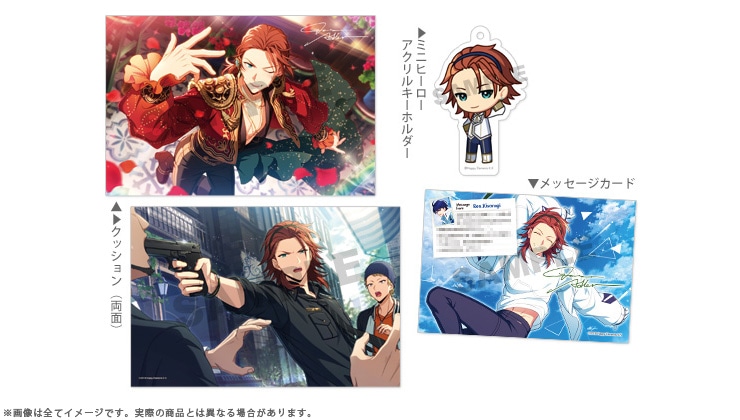【クッション、アクリルキーホルダー、メッセージカード】の3種がセットになったスペシャルなアイテムです。