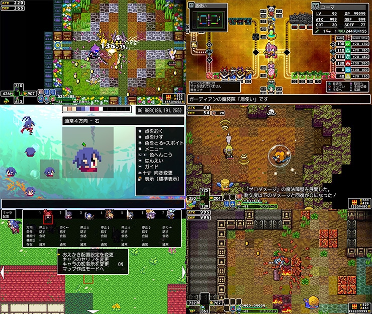 操作キャラクターである「主役」や仲間になる「脇役」、武器や防具のグラフィックも作成することができます。