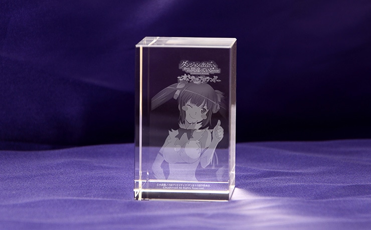 「ヘスティア」をクリスタルキューブ内に3D立体レーザー彫刻で再現した3Dクリスタルです。