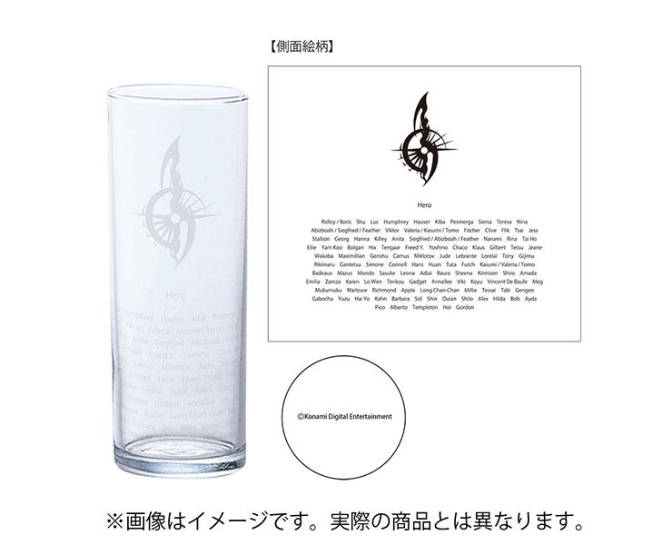 始まりの紋章と108星の名前を刻んだ英雄たちのメモリアルグラスです。