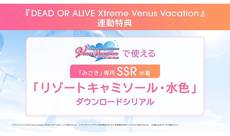 ※ダウンロードシリアルは『Venus Vacation PRISM』のゲーム内メニューで表示されます。