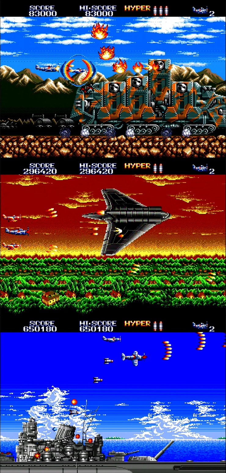 1988年のアーケード版『P-47』をベースとしながらも、本作ではゲームシステム、武器、ステージ、ボスを一新。